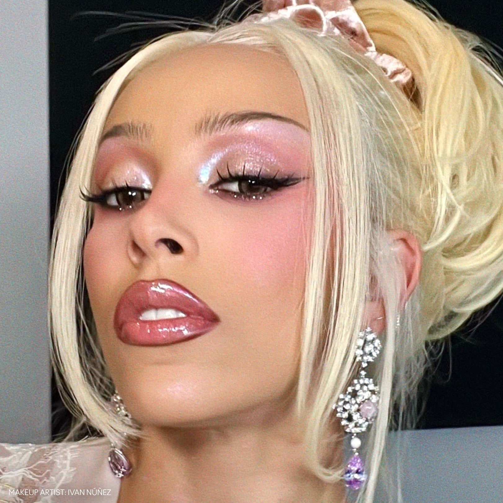 Mais tarde, o maquiador Ivan Núñez fez ajustes sútis, porém marcantes, no visual do red carpet, usando o Batom Matte M·A·CXIMAL na cor Honeylove e o Lápis de Boca na cor Chestnut para criar um look com clima anos 80, sensual e impactante, perfeito para a performance inesquecível de seu novo single “Jealous Type.”