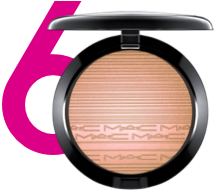 Aplique nas maçãs do rosto e osso do nariz o Iluminador Extra Dimension Skinfinish na cor Show Gold para um brilho rosa pêssego luminoso.